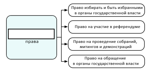 | право обращаться лично, а также направлять индивидуальные и коллективные обращения в государственные органы | право на свободу и личную неприкосновенность | право избирать и быть избранными в органы местного самоуправления |