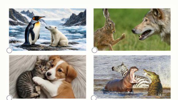 Задание 3. Катя готовилась к уроку по биологии и искала подходящие картинки для презентации. Внимательно рассмотрите изображения и выберите то, которое сгенерировано ИИ и не отражает реальные взаимоотношения организмов: