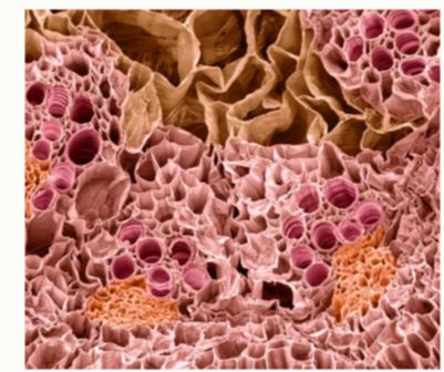 растения, под электронным микроскопом, изображение тонировано в условные цвета