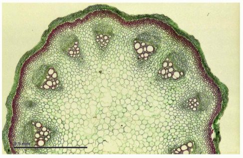 Задание 9. На занятии кружка ученик сделал срез растения при помощи микротома, окрасил препарат и сфотографировал его с помощью цифровой камеры.