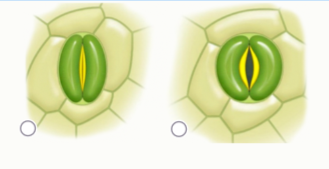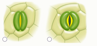 Задание 4. На рисунках показаны два различных состояния одного и того же устьица. В каком состоянии тургор замыкающих клеток выше?