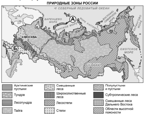 На карте буквами А и Б отмечены две природные зоны.