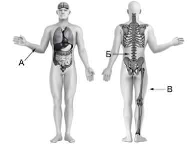 Задание 4. Рассмотри изображение человека. Определи, какие части тела и органы обозначены буквами на этом изображении.