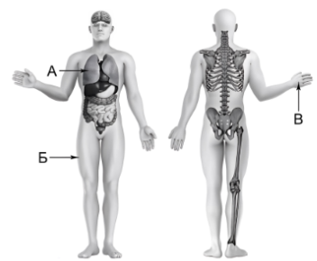 Задание 4. Рассмотри изображение человека. Определи, какие части тела и органы обозначены буквами на этом изображении.