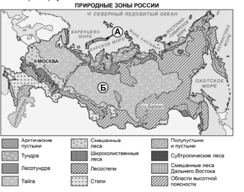 На карте буквами А и Б отмечены две природные зоны.