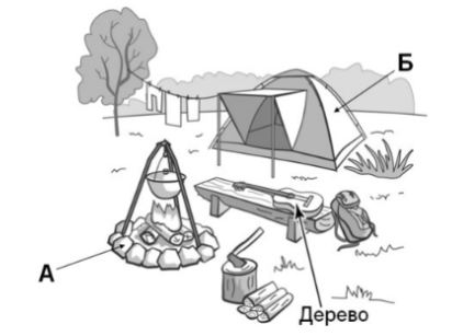 Задание 1. Рассмотри рисунок, на котором изображена стоянка туристов.