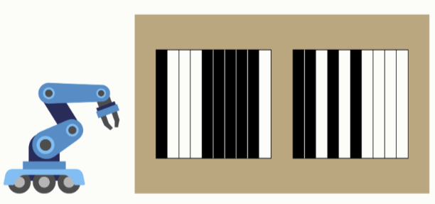 Дед Мороз автоматизировал подготовку подарков — теперь их сортируют роботы‑помощники, считывая специальные штрих‑коды. Каждый штрих‑код состоит из одной или нескольких групп по 10 полос. Все полоски имеют равную ширину в 1 клетку, каждая полоса может быть либо чёрной, либо белой. В каждой группе из 10 полос крайняя левая всегда чёрная, а крайняя правая всегда белая. Между ними находятся 8 полос, которые несут информацию. Белая полоса означает двоичный 1, чёрная — двоичный 0. Внутри одной группы биты читаются справа налево: сначала идёт младший разряд, потом старший. Если групп несколько, то они передаются и читаются в порядке слева направо: сначала старший пакет из 8 битов, потом младший. Результатом считывания является уникальный идентификационный номер, состоящий из битов всех пакетов —так каждый подарок прибудет к адресату без ошибок. Система логирования робота зафиксировала два пакета данных, соответствующих двум группам полос на общем подарке для Маши и Вити: