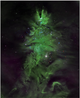 Однажды в декабре во время традиционного наблюдения за звёздами Витя обнаружил интересный объект диаметром 40 угловых минут в созвездии Единорога. Данные справочника подсказали, что это звёздное скопление «Рождественская ёлка» (NGC 2264), реальный размер которого составляет около 30 световых лет. «Итак, началось», — подумал Витя, а в воздухе повеяло запахом мандаринов. Как давно от момента наблюдения звёзды скопления испустили свет, который увидел Витя?