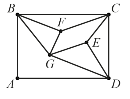 Задание 6. На рисунке изображён граф. Юля обвела этот граф, не отрывая карандаша от листа бумаги и не проводя ни по одному ребру дважды. С какой вершины Юля начала обводить граф, если она закончила его обводить в вершине F?