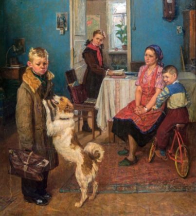 Задание 37. В 1932 году он стал художником-репортером в арктической экспедиции Отто Шмидта, которая прошла Северный морской путь за одну навигацию. Годом позже вошел в состав экипажа парохода «Челюскин», который был раздавлен льдами. Арктические зарисовки прославили молодого художника. Перед вами одна из его наиболее известных работ — «Опять двойка». О ком идет речь?