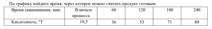 Для йогурта она составляет 80°Т. По данным таблицы постройте график зависимости кислотности от времени сквашивания.