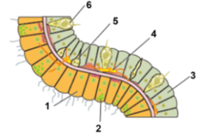 | Как называется клетка тела гидры, обозначенная на рисунке цифрой 6? | В каком слое тела располагается данная клетка? | Какую функцию выполняет данная клетка? |