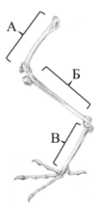 Задание 13. Рассмотрите изображение конечности птицы. Заполните пустые ячейки таблицы, используя рисунок и выпадающие списки.