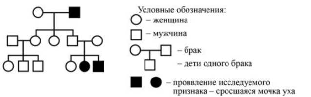 Задание 4. Изучите фрагмент родословного древа семьи, у некоторых членов которой сросшаяся мочка уха.ФРАГМЕНТ РОДОСЛОВНОГО ДРЕВА СЕМЬИ