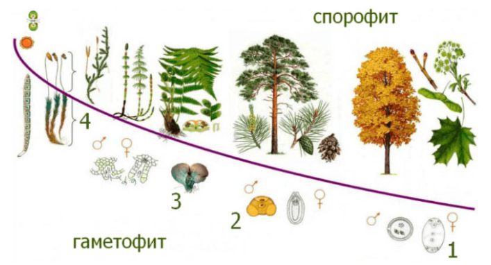| развиваются архегонии и антеридии | 1 2 3 |