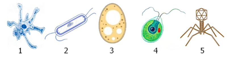 Задание 14. Какой цифрой обозначен рисунок, на котором изображён организм, имеющий целлюлозную клеточную стенку?