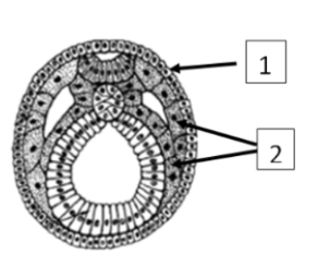Задание 17. Установите соответствие между структурами и зародышевыми листками, обозначенными на рисунке цифрами 1, 2: к каждой позиции, данной в первом столбце, подберите позицию из выпадающего списка.