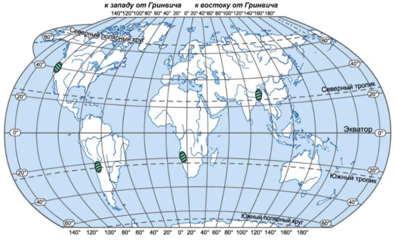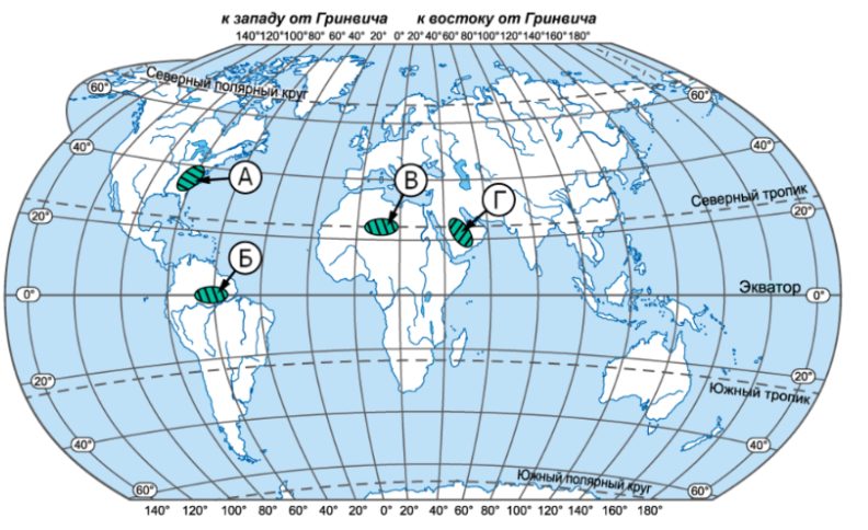Задание 12. На карте штриховкой показаны четыре территории, которые будут частично затоплены водами Мирового океана в случае повышения его уровня на 10 м вследствие глобальных климатических изменений. Определите страну, в которой находится та территория, в пределах которой будут затоплены наибольшие площади.