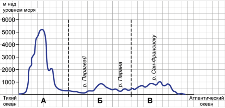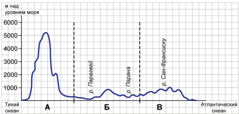 Задание 5. На уроке географии Сергей построил профиль рельефа Южной Америки, представленный на рисунке.