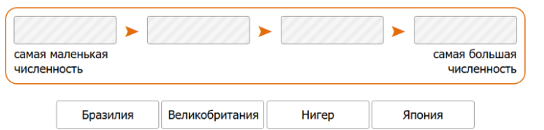 Расположите страны в порядке увеличения численности населения, начиная со страны с самой маленькой численностью.