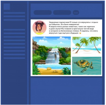 4) Пост в социальной сети с историей о том, как Вы хорошо съездили на отдых, какие интересные места посетили и какие эмоции получили, вернувшись домой.