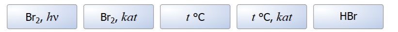 Из предложенного перечня выберите реагенты и условия, с помощью которых можно осуществить следующие превращения: переместите с помощью компьютерной мыши в пустые ячейки формулы выбранных веществ и условия, при которых эти превращения происходят.