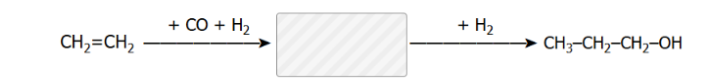 Задание 13. Пропанол-1 применяют в качестве растворителя для восков, чернил, природных и синтетических смол, а также для синтеза пропионовой кислоты, пестицидов, некоторых фармацевтических препаратов. Пропанол-1 в промышленности получают из этилена по приведённой схеме превращений: