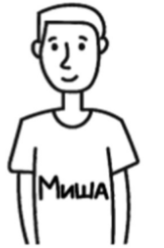 Задание 10. Миша написал на футболке своё имя (см. рисунок). Затем он подошёл к зеркалу. Нарисуй, как будет выглядеть отражение его имени в зеркале.