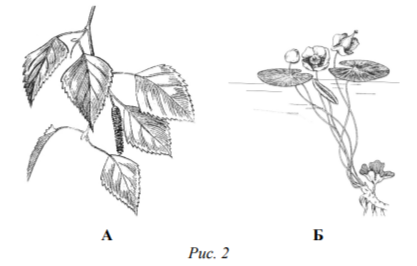 7.2. Рассмотрите растения А и Б (рис. 2). У какого растения большее количество устьиц расположено на нижней стороне листа? Запишите в поле ответа соответствующую букву.