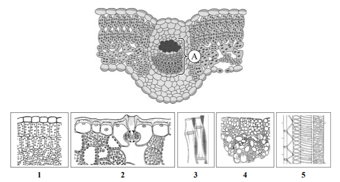 Задание 14. Найдите на рисунках 1–5 элементы тканей, которые обозначены буквой А.