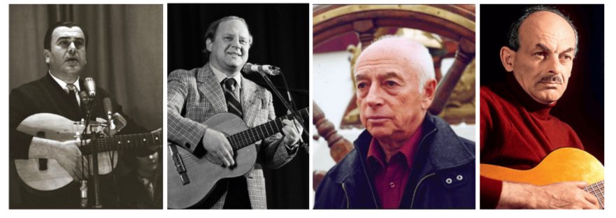 Задание 10. Ниже даны фотографии бардов — участников и современников Великой Отечественной войны. Одному из них довелось пережить блокаду Ленинграда, а в послевоенное время стать крупным учёным.