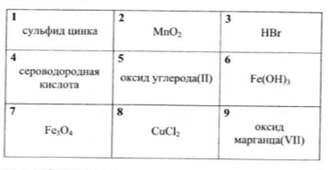 Задание 5. Среди предложенных формул/названий веществ, расположенных в пронумерованных ячейках, выберите формулы/названия: