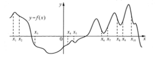 Задание 8. На рисунке изображён график функции y=f(x). На оси абсцисс отмечено десять точек: x1, x2, x3, x4, x5, x6, x7, x8, x9, x10. Найдите количество отмеченных точек, в которых производная функции f(x) отрицательна.