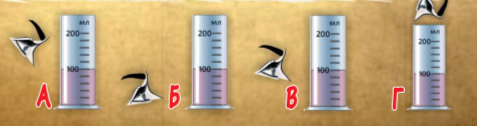 10. На какой картинке человек правильно смотрит на шкалу измерительного цилиндра при определении объёма жидкости?
