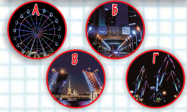 4. Костя сфотографировал отражение ночного города от поверхности воды. Какому городскому пейзажу соответствует это отражение?