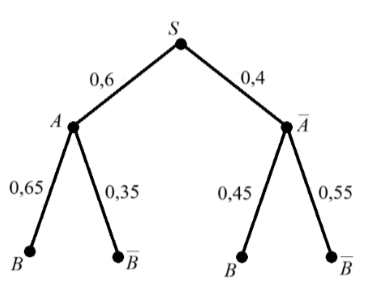 Задание 6. На рисунке изображено дерево некоторого случайного опыта S, в котором рассматриваются события A и B. Найдите вероятность события B (результат не округлять).