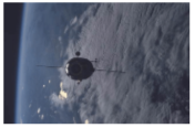 Задание 2. На фото российский модуль Пирс готовится к стыковке с МКС. Видна граница диска Земли на фоне космического пространства. Почему она нечёткая?