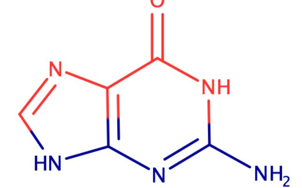 15. На картинке представлена структурная формула азотистого основания гуанина, одного из четырех оснований из которых состоит молекула ДНК. По какому принципу в нем покрашены атомы?