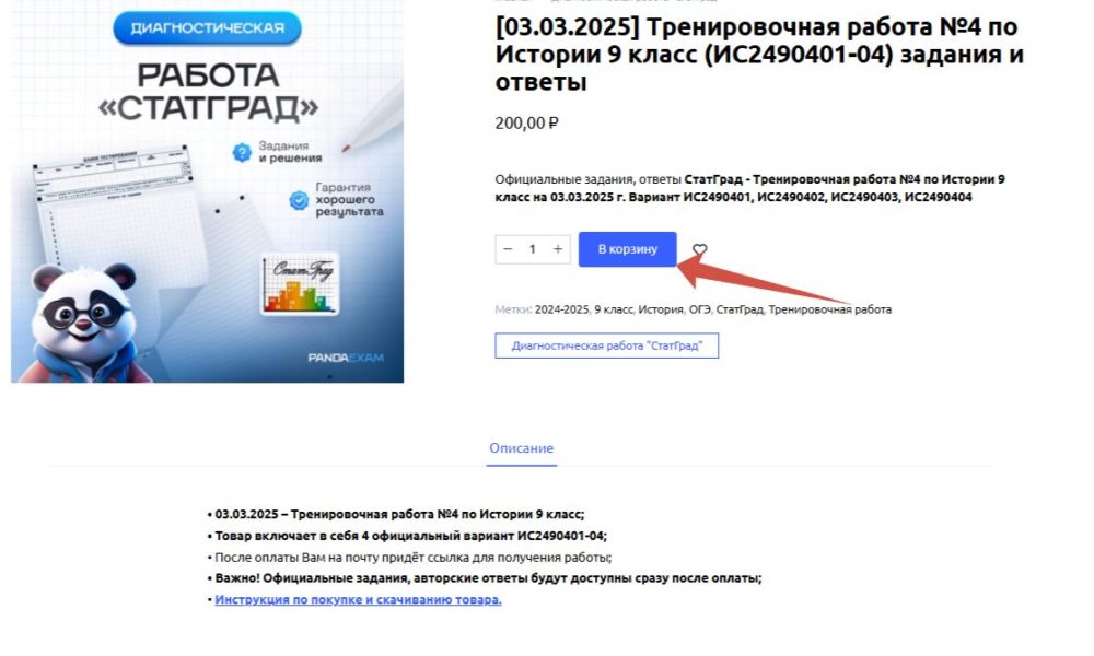 Шаг 5. Нажимаем на кнопку «В корзину», обязательно ознакомьтесь с описанием товара.