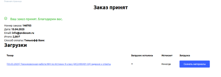 Шаг 9. После успешной оплаты Вас перенаправит на страницу «Успешной оплаты», нажимаем «Скачать материалы». Материалы загружаются согласно описанию на товаре (Шаг 5).