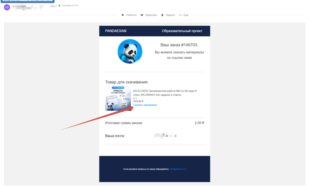 Шаг 10. На Вашу электронную почту «Email» товар дублируется, чтобы Вы не потеряли ссылку. Ваш заказ может попасть в «Спам» всегда проверяйте.