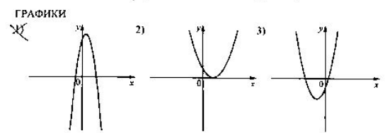 Задание 11. На рисунках изображены графики функций вида y=ax2+bx+c. Установите соответствие между знаками коэффициентов aa и cc и графиками функций.