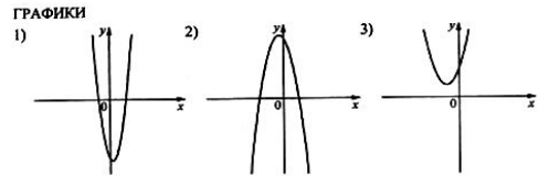Задание 11. На рисунках изображены графики функций вида y=ax^2+bx+c. Установите соответствие между знаками коэффициентов aa и cc и графиками функций.
