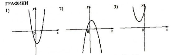 Задание 11. На рисунках изображены графики функций вида y=ax2+bx+c. Установите соответствие между знаками коэффициентов aa и cc и графиками функций.