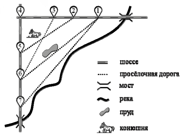 Задание 1. Пользуясь описанием, определите, какими цифрами на плане обозначены деревни.
