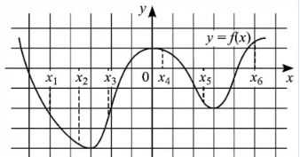 Задание 8. На рисунке изображен график дифференцируемой функции y = f(x) и отмечены шесть точек на оси абсцисс: x1, x2, x3, x4, x5, x6. В скольких из этих точек производная функции f(x) отрицательна?