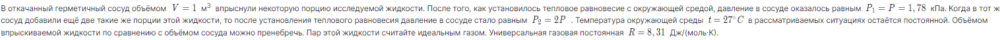 22.Чему равно давление насыщенных паров исследуемой жидкости Pнас при температуре T=300 К? Дайте ответ в кПа с округлением до сотых долей.