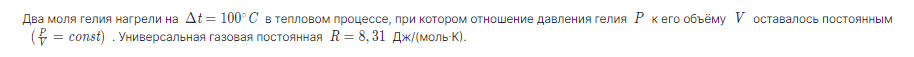10. Найдите молярную теплоёмкость гелия в данном процессе. Дайте ответ в Дж⁄(моль∙К) с округлением до десятых долей.