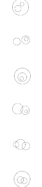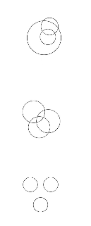 3. Из приведённых ниже изображений выберите все диаграммы, которые могут отражать отношения между карбахратыми, ловоротыми и швертобростыми. Каждая из категорий обозначается отдельным кругом, пересечение обозначает общие элементы.