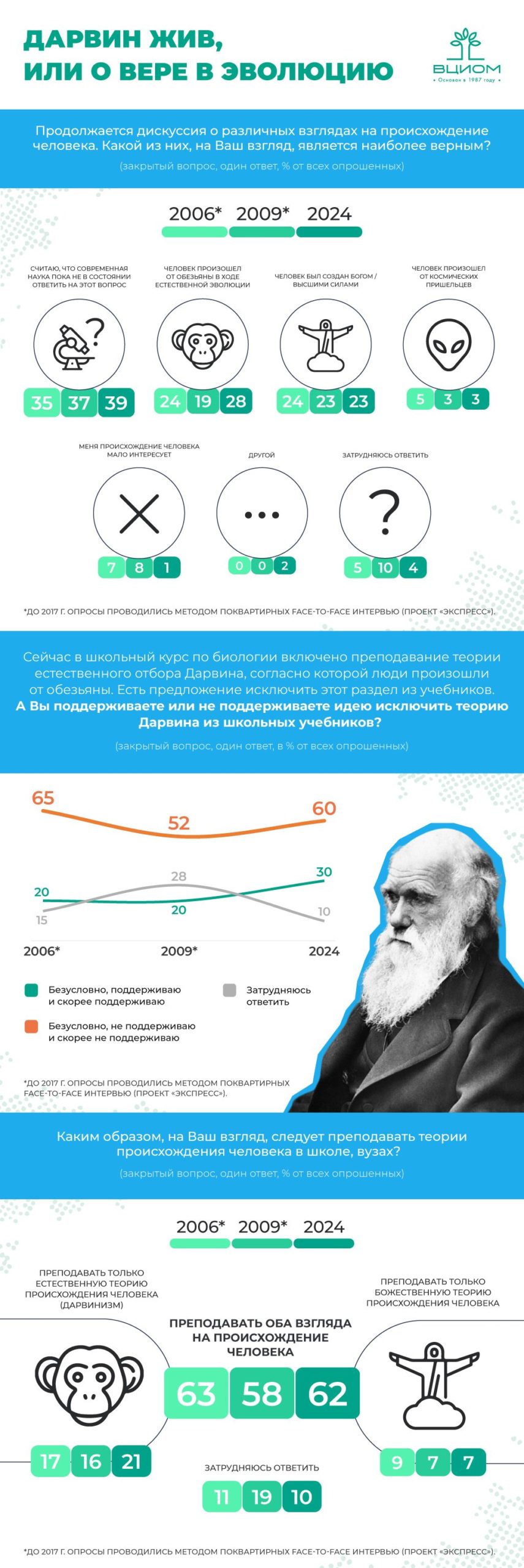 Доля сторонников исключения из школьных учебников теории Дарвина за 18 лет…